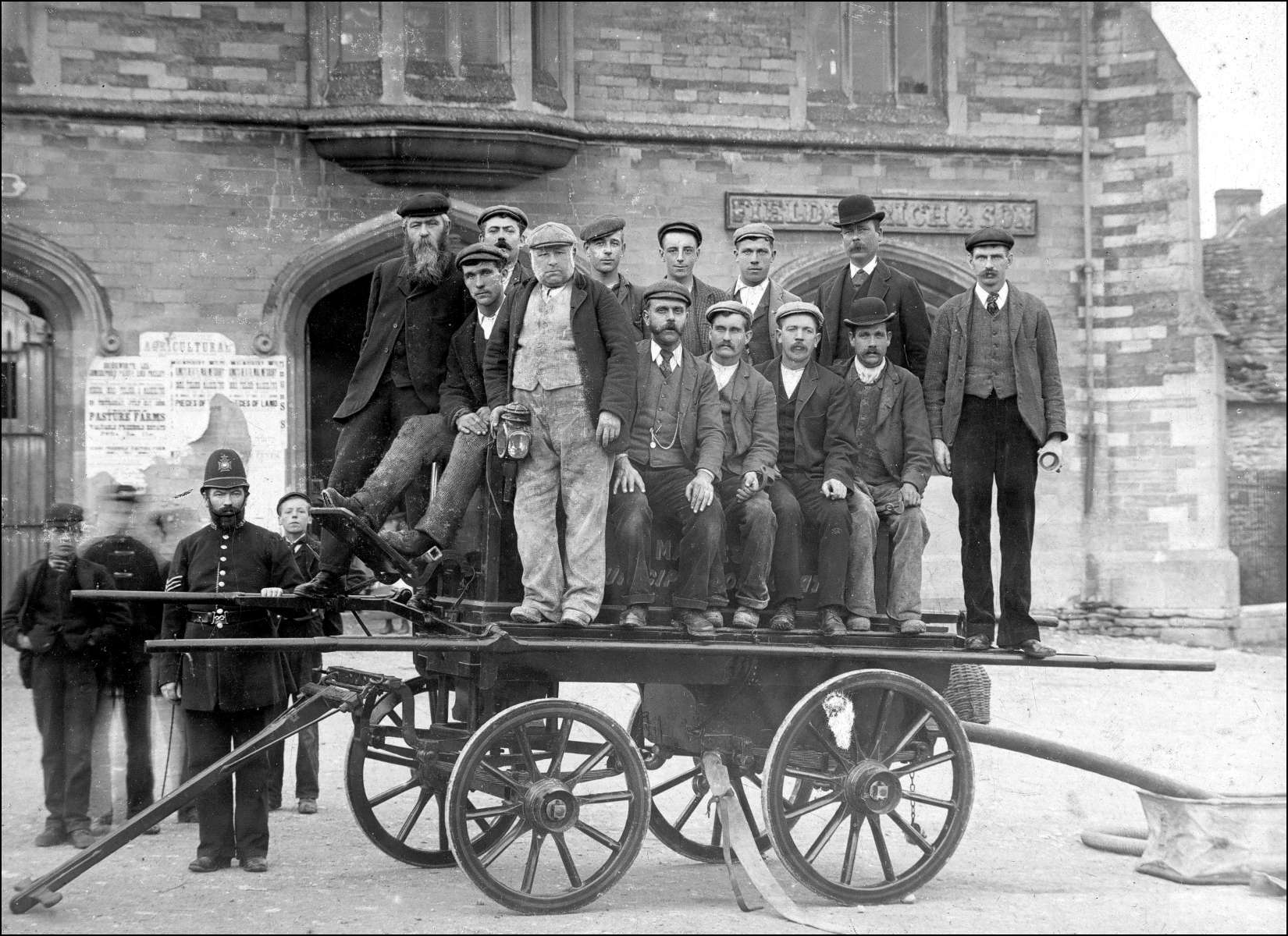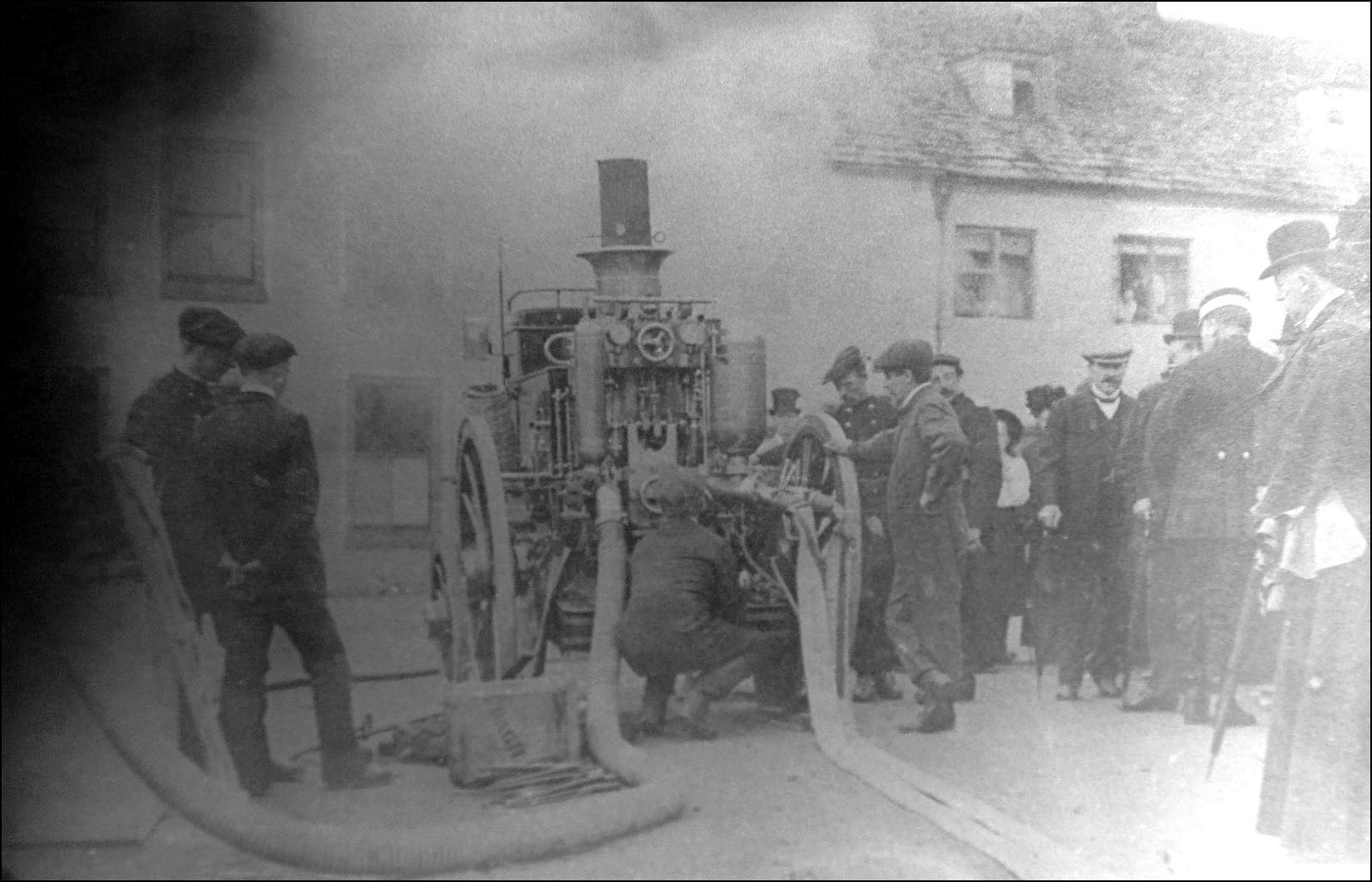 An increase in subscription made it possible to buy a steam pump and half a mile of hose. Regulations stipulated that the new engine was not supposed to appear without a minimum crew of four men, one of them an officer. Also, a new hydrant was installed at the Market Cross.