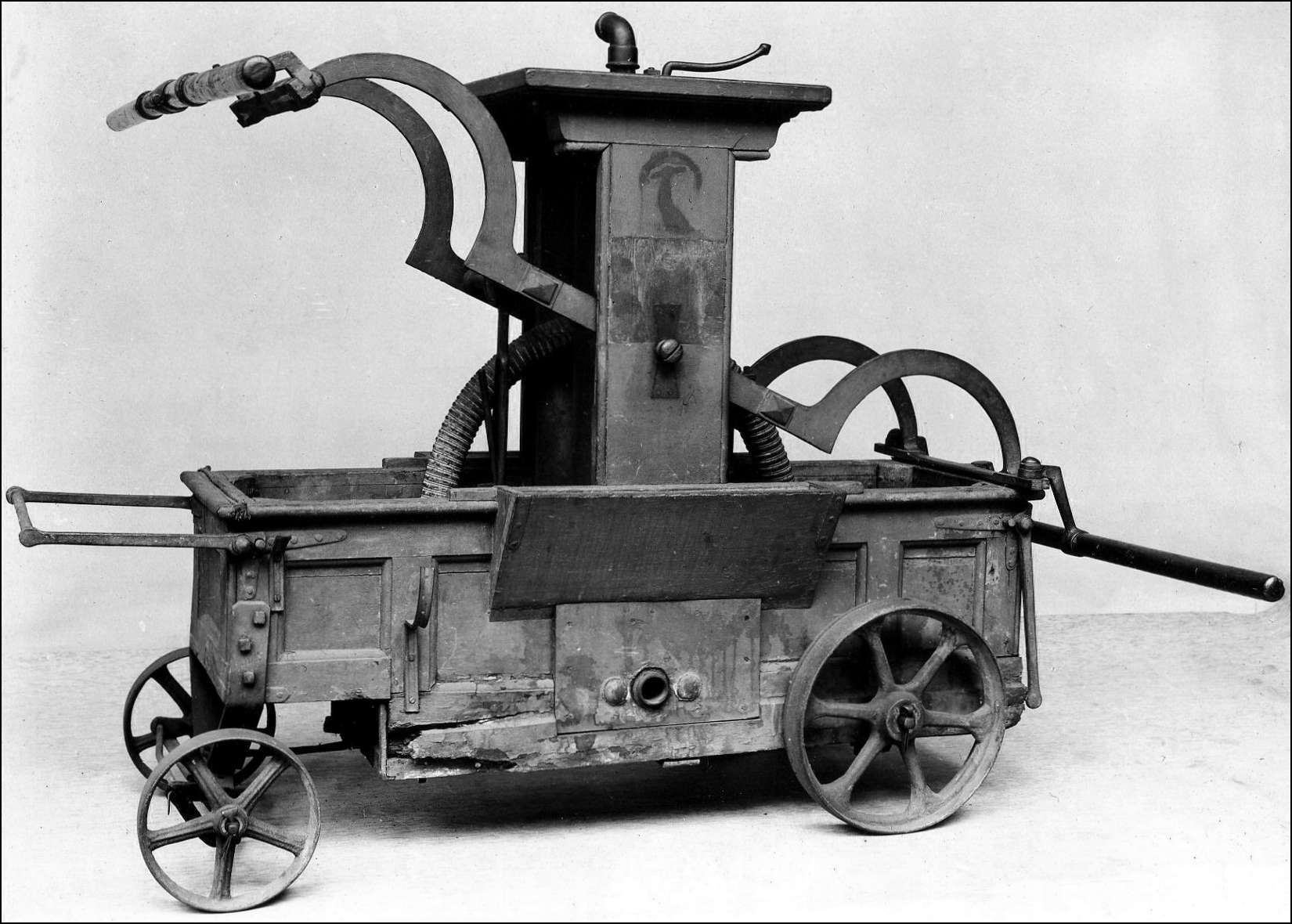 The Manual fire engine would have been transported to a fire by a horse drawn cart. The pump was fed from the local water sources, with the Fire Brigade divided into those who were pumping, those minding the hoses and the others directing the water.